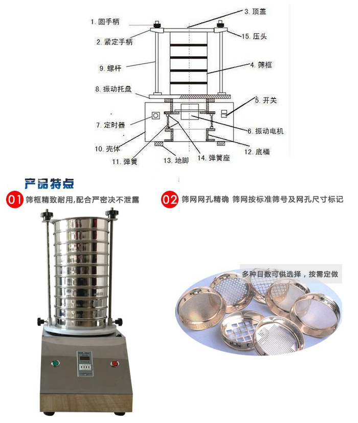 四、必須由凹槽或定位螺絲對(duì)標(biāo)準(zhǔn)篩具進(jìn)行定位。