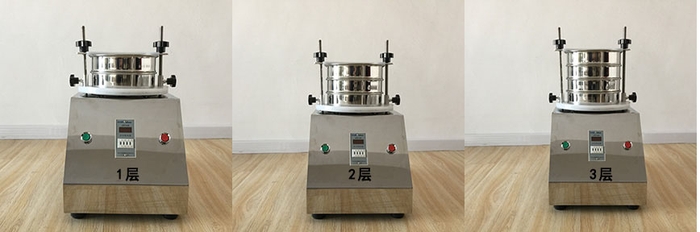 二、把標(biāo)準(zhǔn)篩具按孔徑從大到小,從下到上依次疊放到托盤座上,由凹槽或定位螺絲對(duì)標(biāo)準(zhǔn)篩具進(jìn)行定位。
